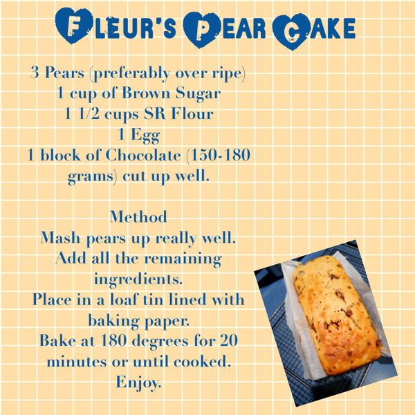 Pear crumbleΒ IngredientsΒ 6 πππππ or 3 ππππππ and 3 πππππ - diced into 1-2cm pieces. Peeling is optional.Β CrumbleΒ 1 cup rolled oatsΒ 1/2 cup desiccat...